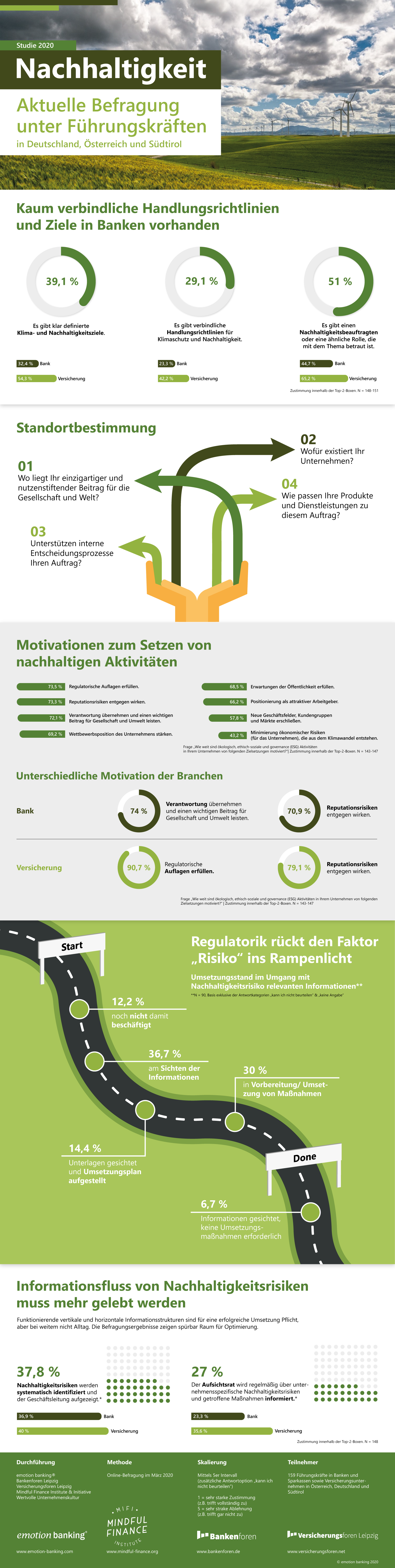Die Daten beziehen sich auf den Anteil der Teilnehmer mit starker Zustimmung (Antwort in den Top-2-Boxen) im Rahmen der Studie Nachhaltigkeitin der Finanzindustrie 2020 (Erhebungszeitraum März 2020, N = 148-151).